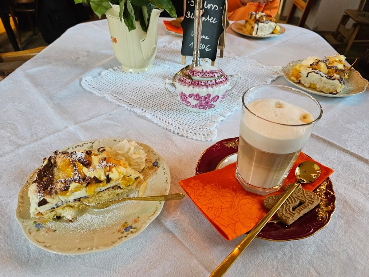 Visitors tend to come for sweet treats, with Zupfkuchen and Pflaumenkuchen standing out as local favorites. The cakes pair well with seasonal offerings like Glühwein during cooler months, making it a comfortable choice all year round. The café also welcomes friendly dogs, adding to its approachable vibe for those wanting to unwind with their pets nearby.